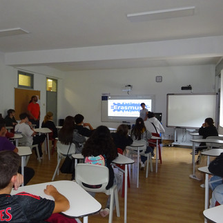 Os alunos dos cursos profissionais de Técnico de Multimédia, Auxiliar de Saúde e Desporto assistiram na 4ª feira de tarde a uma sessão de divulgação do projeto Erasmus+ do Agrupamento. Nesta sessão, dinamizada pela equipa Erasmus+, os alunos ficaram a saber que existe a possibilidade de realizarem um estágio no estrangeiro no presente ano letivo, os critérios de seleção, o que está incluído no financiamento, e outras informações de interesse.